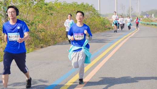 9点30分,发令枪响,比赛正式开始。创新班的学子们如离弦之箭,满怀信心地冲上赛道。他们穿梭于秋意盎然的田园风光之中,有的步伐矫健,一马当先;有的结伴而行,相互鼓励。汗水浸湿了衣背,疲惫侵袭着身体,但没有人轻言放弃。每当有同学脚步放缓,身旁便会传来同伴的加油声;每当有人感到艰难,带队老师与志愿者的鼓励就如约而至。这10公里,不仅是速度的比拼,更是意志的磨砺;脚下的每一步,都在书写着坚持与超越的青春故事。
