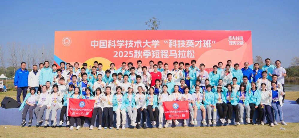 11月15日,中国科学技术大学“科技英才班”2025秋季短程马拉松在合肥市小岭南开赛。在这片被誉为“最美生态赛道”的土地上,我校2025级高一创新班的76名学子,在中科大基础教育集团党委书记、主任马运生,我校党总支书记、校长汤胜,副校长徐斌与创新班班主任章洲、张庆老师的带领下,与中科大学长学姐们并肩而立,共同迎来一场体力、毅力与团队精神的综合考验。