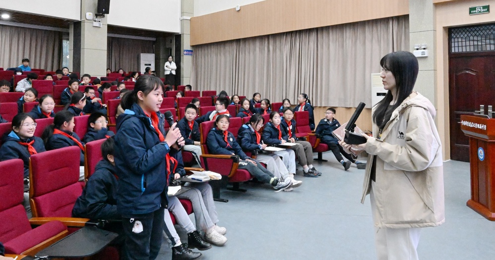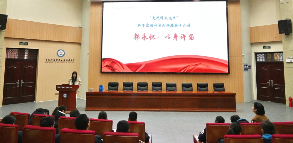 11月19日,我校举办“走近科大先生”系列讲座第十六讲。本次讲座以《郭永怀:以身许国》为主题,特邀中国科学技术大学档案文博院卫怡凡老师担任主讲,为六年级全体学生讲述“两弹一星”功勋烈士郭永怀先生的爱国初心与科学人生。活动由年级组长宣薇主持。
