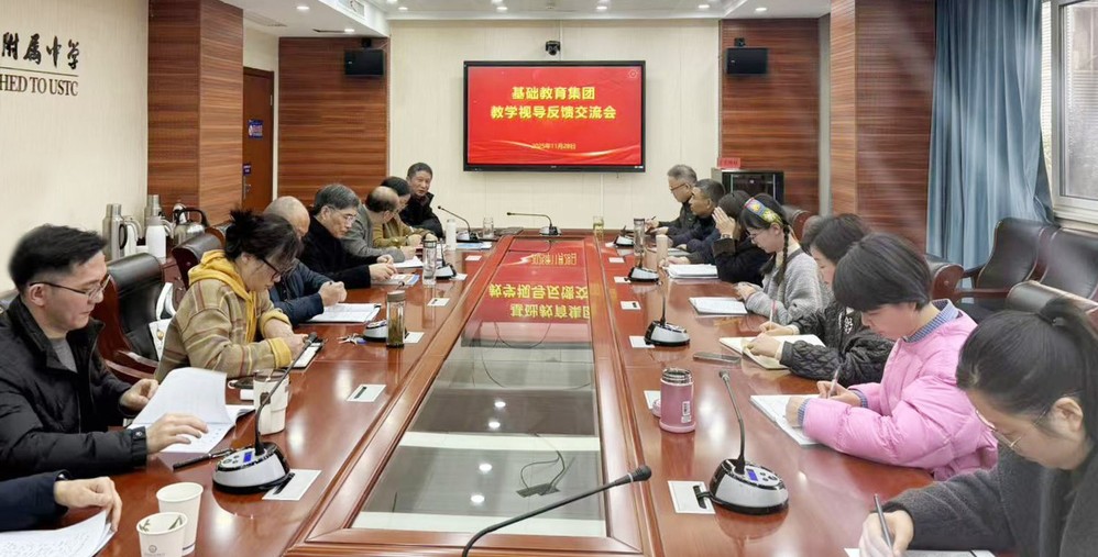 11月28日上午,中科大基础教育集团教学视导反馈交流会在我校召开。会议由集团督导黄严生主持,专家团队与我校教师代表共同参会,围绕课堂教学情况开展深度研讨与专业反馈。