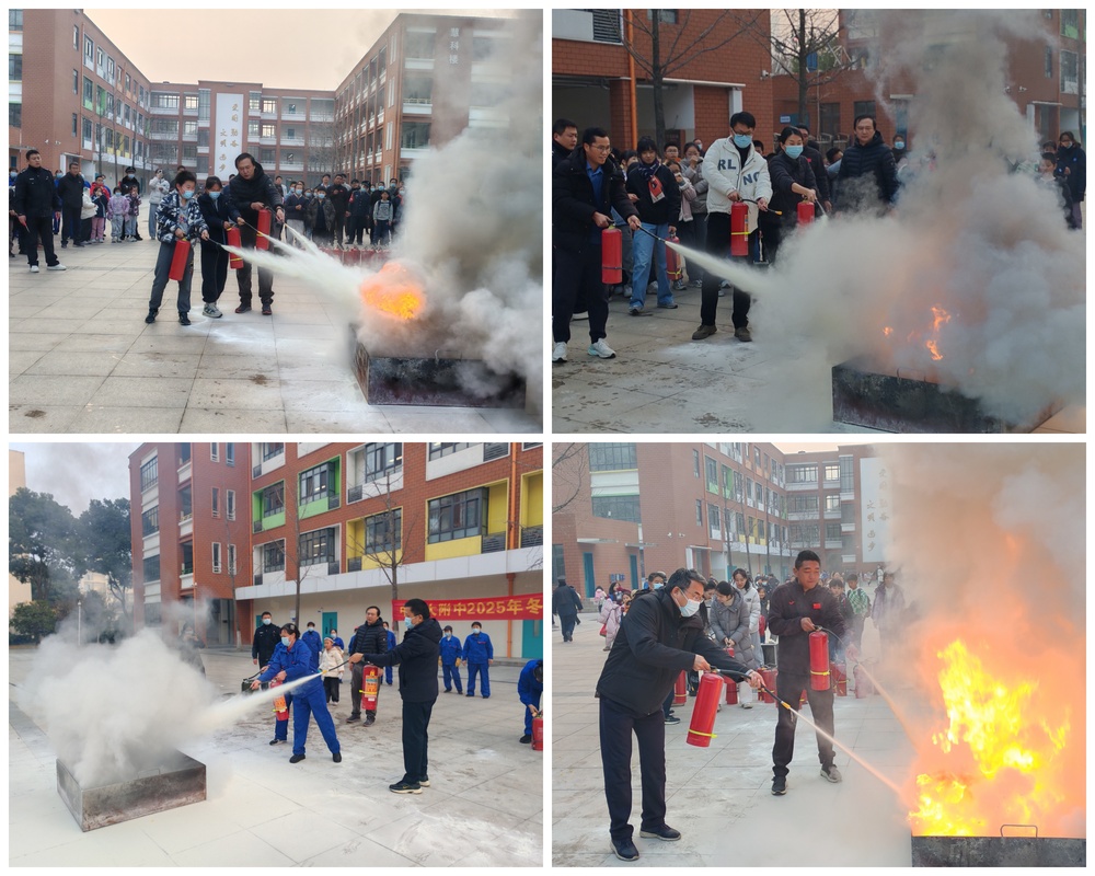 疏散环节结束后,师生分批次有序前往指定区域进行实操学习。张吉及专业消防人员详细讲解了干粉灭火器的构造、使用步骤及灭火要领,并进行规范演示。“提、拔、握、压”的操作口诀转化为生动实践,师生分组上场,亲身体验从判断风向、瞄准火源到扑灭初起火灾的全过程。除学生外,2024、2025年新入职教职工、保洁与安保人员也接受了专项培训与实操考核,实现重点岗位人员消防技能全覆盖,切实夯实校园消防安全工作基础。