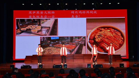 文艺汇演在激昂的民乐合奏《赛马》中奔腾开场,马蹄声疾,拉开了欢庆的序幕。七年级学生用歌舞《福气东来》送出了第一波新年祝愿,亲子节目《感谢有你》则以真挚温情,让感恩之心缓缓流淌。舞台的灯光流转间,高一年级情景剧《师说》生动演绎师生间的智慧启迪与“沉浸式”成长。随后,师生共舞《舞聚此刻》,默契的舞步模糊了讲台与舞台的边界。八年级以刚柔并济的《舞与武》,展现了独属于中华的浪漫与气魄。当师生再次同台,一首《敕勒歌》引众人驰骋于“风吹草低见牛羊”的辽阔画卷。