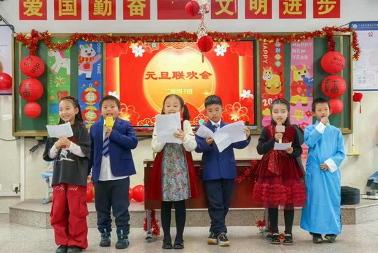与此同时,小学部也化身为欢乐的海洋。一年级亲子趣味运动会,并肩奔跑的快乐陪伴每个家庭开启新的一年。各班教室里,同学们在属于自己的“小舞台”上各展所长:故事大王妙语连珠,诗词达人吟咏抒怀,乐器合奏奏响快乐乐章。制作新年贺卡、参与趣味游戏、分享节日美食、互赠真挚祝福……在欢声笑语中,合作、友爱与分享的品格悄然生根。