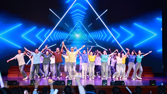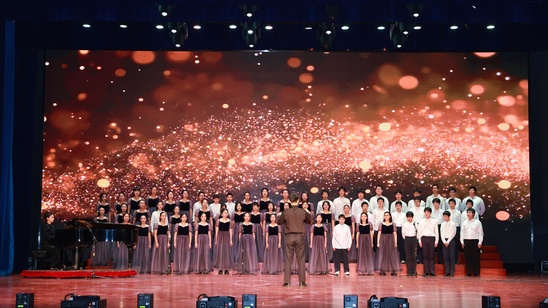 汇演的后半程,思想与梦想成为主角。学生会的表演《循光而遇 追梦前行》铺开了理想的画卷,吉他社弹唱的《夜空中最亮的星》为追梦人点亮温暖陪伴。高二年级的话剧《追光者说:钱学森与我们的星河》,将科学精神的火炬庄严传递。高一年级的舞蹈《跃动青春》释放着无尽的活力,最终,合唱团以《呼吸》和《Day of Fire and Sun》的天籁和声,演绎生命律动与炽热光芒,为这场视听盛宴画上了一个磅礴而充满希望的休止符。