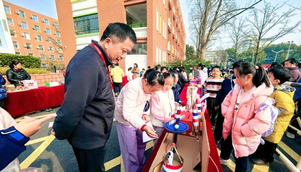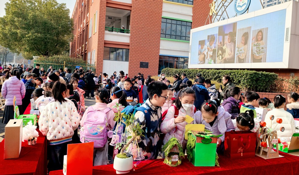 12月30日下午,小学部门前广场变身热闹的 “创意市集”,三十多件作品有序陈列,吸引全校学生、家长、老师的驻足。大家在展位前细细品鉴,将选票郑重投入心仪作品的投票箱,用行动为创意与环保点赞。自主投票不仅保障了评选的公平公正,更让学生在互动中相互学习,深化了对环保与创新的认知。活动最终评选出“环保创意奖”“巧手实践奖”若干名。