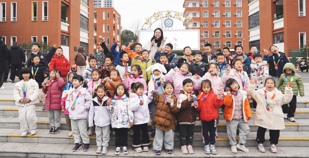 活动尾声,全体师生与家长齐聚赛场合影留念。同学们胸前的奖牌闪闪发光,一张张灿烂笑脸,成为冬日里最温暖的画面。