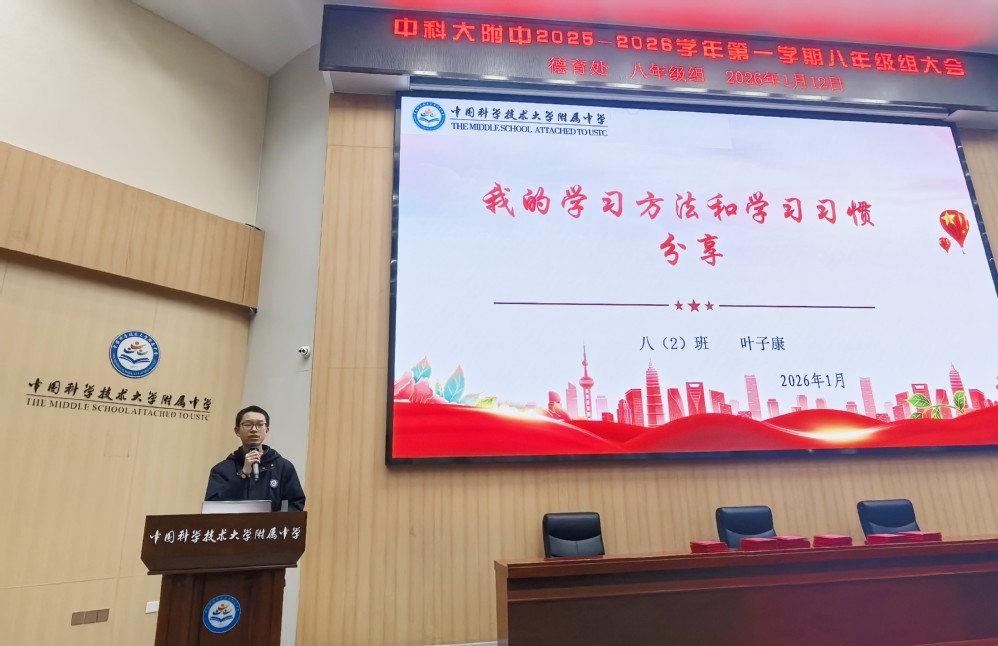 八(2)班叶子康同学首先分享学习心得。他强调以乐观积极的心态面对学习,不畏困难,并介绍了如何合理安排学习与休息时间,建议固定作息、睡前整理书包,让每日生活更有规律。他还提到制定短期与长期学习计划的重要性,鼓励大家灵活调整,明确学习方向。