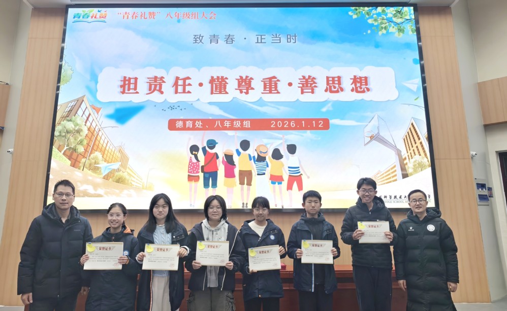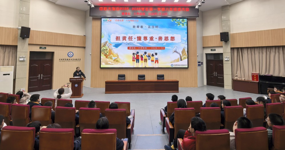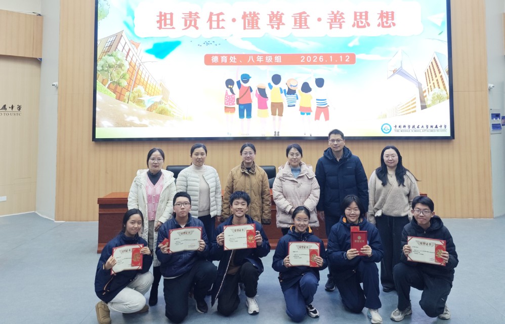 为强化学生责任意识、培育尊重品格、提升思辨能力,1月12日下午,我校八年级在德育处组织下,开展了以“担责任·懂尊重·善思想”为主题的集体班会。德育处主任王飞、副主任朱浩参加活动,与八年级全体师生共同见证这一成长时刻。