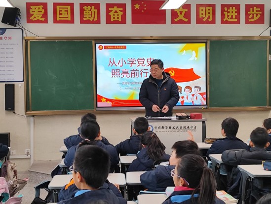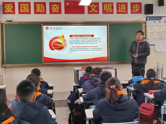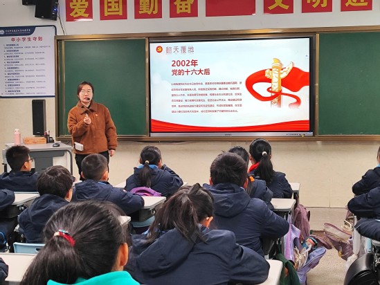 1月12日上午,小学第二党支部组织党员教师深入五、六年级各班,开展“从小学党史,照亮前行路”党史学习教育主题班会。