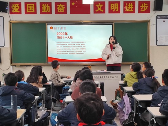 活动中,党员教师们紧密结合学生年龄特点与认知规律,积极创新教育形式,通过生动讲述人物故事、展播珍贵历史图文、组织互动问答交流等方式,系统回顾了中国共产党团结带领全国各族人民从站起来、富起来到强起来的伟大历程。学生们认真聆听、踊跃参与,在重温光辉历史的过程中,深切感悟革命先辈的崇高精神,深刻认识到今日幸福生活的来之不易,进一步明确了作为新时代少先队员所肩负的使命担当。