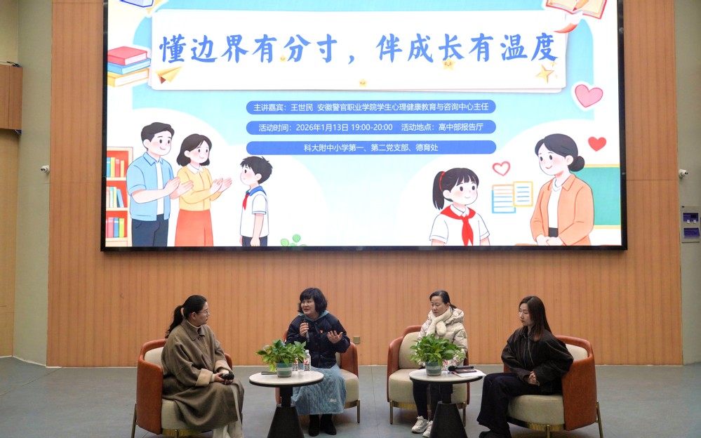 本次活动特邀中国心理学会注册心理师、安徽警官职业学院学生心理健康教育与咨询中心主任王世民教授担任主讲。王世民以“家教有边界,成长更自由”为主题,聚焦五六年级学生成长核心需求,系统解读身体、情感、物品与空间“三层边界”的核心内涵,围绕家庭、学校、个人三方协同的培养路径,针对隐私保护、规则建立、沟通技巧等关键问题,提供了“温和而坚定沟通”“情景应对卡片制作”等实用方法,同时就同伴压力下的边界坚守、边界意识融入亲子关系优化等问题展开深度指导。