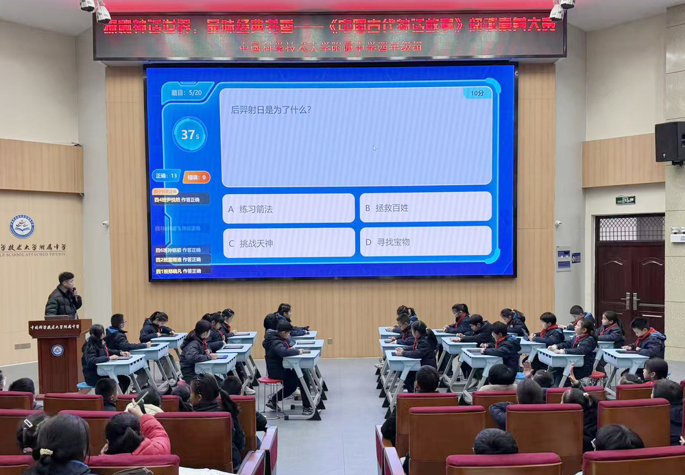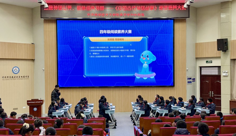 1月21日下午,我校四年级组精心策划的“探秘神话世界 品味经典书香”《中国古代神话故事》阅读素养大赛在报告厅举办。全体四年级学生积极参与,现场洋溢着对古老神话的浓厚兴趣与探索热情。