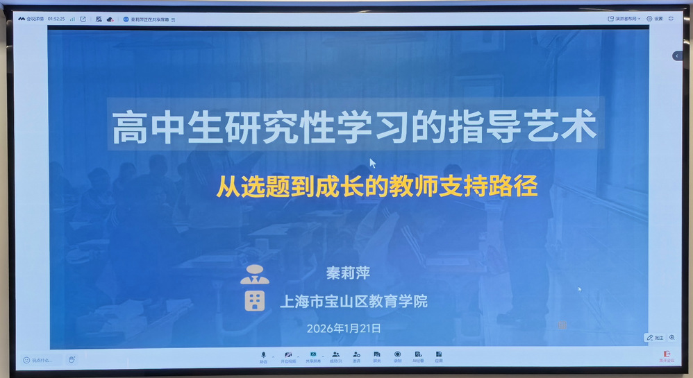 为进一步提升研究性学习课程质量与指导教师专业能力,1月21日下午5点,我校在高中部多媒体教室召开研究性学习指导教师培训会。本次会议采取线上线下相结合的方式,副校长徐斌,校长助理余国军、戈益超与高一、高二相关教师参加会议,会议由教务处副主任张庆主持。