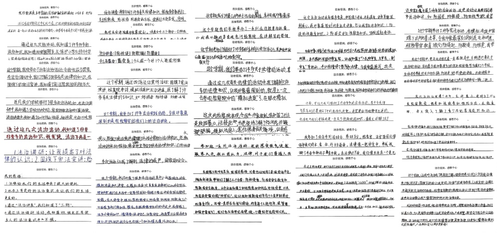 所有靶向活动结束后,各班在道德与法治课堂上组织学生撰写法治学习活动感悟。学生们结合问卷调研后的期待、系列活动中的所见所闻所感,分享了对宪法与法律的新认知,记录了在模拟法庭、基地参观、专题讲座中的收获,梳理了自身法治意识的转变与提升,让法治体验从实践层面深化到思想层面。