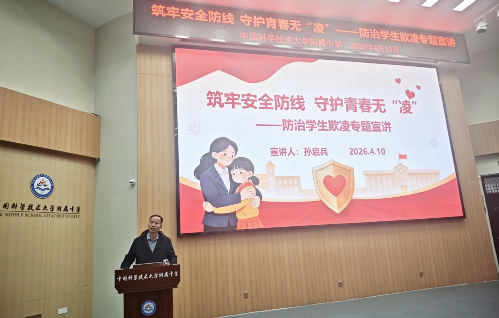 4月10日下午,根据包河区教体局统一部署,我校在报告厅举办面向全体教师的防校园欺凌专题讲座。德育处主任王飞主持,包河区教体局法制安全科科长孙启兵担任主讲。孙科长围绕案例分析、法律法规、识别干预、心理疏导等内容展开系统培训,切实提升教师的一线处置能力。同时,学校组织全体学生观看防欺凌宣传片,通过情景再现与互动问答,引导学生正确认识欺凌行为,学会拒绝欺凌、主动寻求帮助。