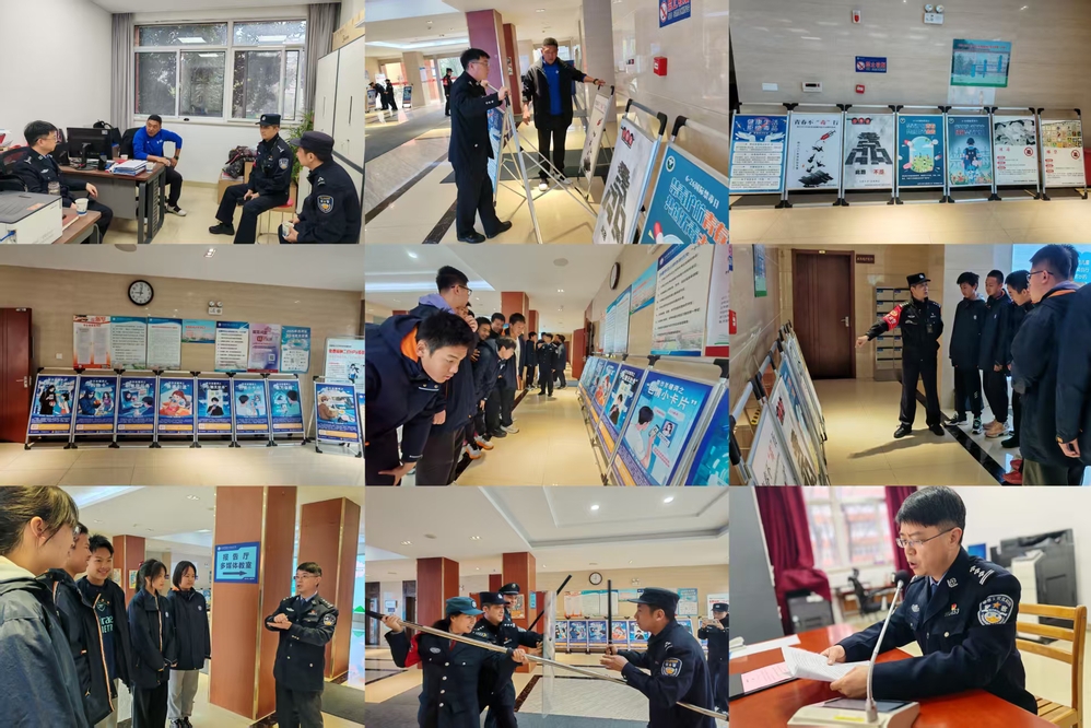 活动期间,芜湖路派出所副所长杨卫峰在升旗仪式上作国旗下讲话,围绕校园欺凌防范、法律底线意识及自我保护等主题,为全体师生带来一堂生动的法治安全课。辖区派出所民警同步参与,联合开展防暴演练,现场指导防暴器械使用及应急处突流程,有效提升了安保人员应对突发暴力事件的能力。此外,校园内设置专题宣传栏,集中展示消防安全、交通安全、防欺凌、防诈骗、禁毒等主题内容,营造“人人讲安全”的浓厚氛围。