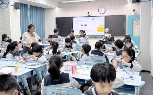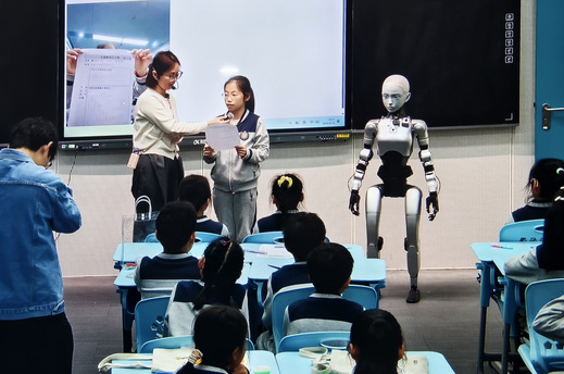 活动中,我校陈珍老师携手全球首款全尺寸教育仿生机器人“小安”,为四(5)班同学们带来一堂别开生面的“声音与乐器设计”主题课。“小安”以助教身份协同授课,以“声音猜猜猜”游戏开场,学生争相应答,直观感知声音特质,抽象声学概念变得鲜活有趣。互动环节结束后,陈珍老师引入课程核心内容。“乐器能发出美妙的旋律,是因为在这个过程中产生了音高音低的变化。”她一边讲解,一边拿出准备好的塑料吸管、剪刀、胶带等材料,同学们分组绘制草图、讨论选材、模拟发声,沉浸式体验项目式学习。制作完成后,各小组展示成果,“小安”点评创作、解答疑问,将声学原理通俗化讲解。课后学生纷纷表示:“原来声音里有这么多奥秘,机器人老师太厉害了!”