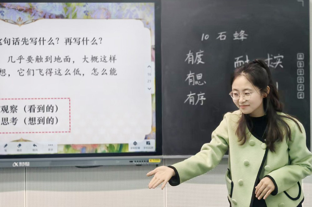 为扎实推进语文思维型课堂建设,助力青年教师专业成长,4月 22日,我校小学语文教研组开展“一研四课”展示课及专题评课活动,朱菂老师授课三年级课文《石蜂》。组内教师齐聚一堂,共研教学、共促提升。